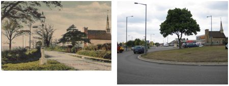 Chapel House in Blackfen Road c1900 (Penhill Road is on the left) and in 2010, now at a busy roundabout.